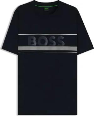Herren H-Tessler 145 Slim-Fit T-Shirt aus strukturierter Baumwolle mit Kontrastkragen Dunkelblau M
