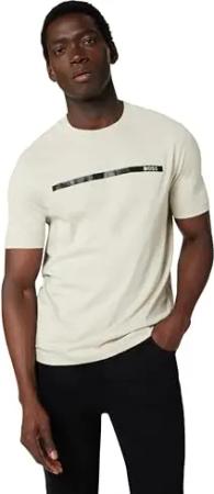Herren H-Tessler 145 Slim-Fit T-Shirt aus strukturierter Baumwolle mit Kontrastkragen Hellbeige XXXL
