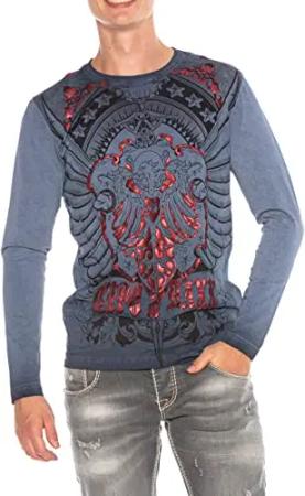 Herren Sweatshirt CL471 Blau – Stylischer Pullover im Modernen Streetwear Look mit Rundhals & Print – Bequemer Sweater für Alltag, Freizeit & Party - CL471 Blau L