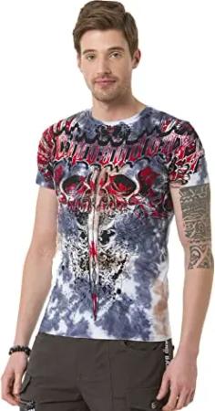 Herren T-Shirt Wing Cross Laserdruck Baumwolle Rundhalsausschnitt Shirt CT746 Grau L