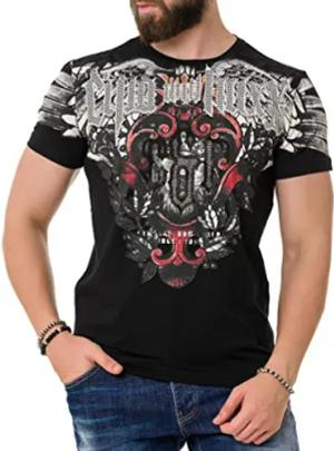 Herren Strasssteine T-Shirt Print Kurzarm CT729 Schwarz M