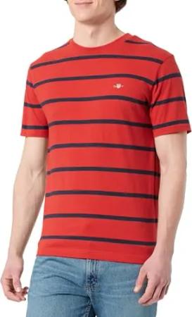Herren Striped SS T-Shirt, Ruby RED, Small