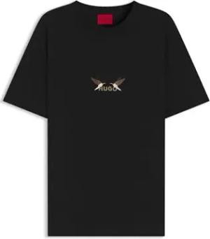 Herren Digraph T-Shirt aus Baumwoll-Jersey mit Vogel-Artwork Schwarz001 S