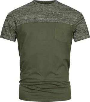Herren INSprings T-Shirt mit Rundhalsausschnitt und Brusttasche | Herrenshirt Sommershirt Army, L