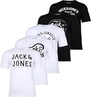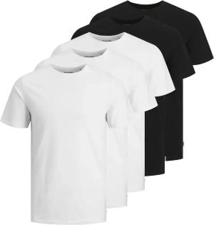 JACK&JONES Herren T-Shirt, 5er Pack - JJLEOGRA Tee Crew Neck, Kurzarm, Rundhals, Baumwolle, Logo-Print Weiß/Schwarz XL
