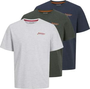 Jack and Jones Herren Basic T-Shirt 3er Pack Tee V-Neck und O-Neck Ausschnitt Slim Fit Weiß Schwarz Blau Grau Rot (O-Neck 3er Pack Light Grey, S)