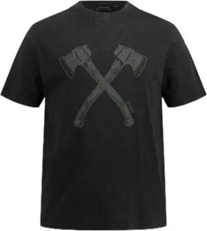 Herren, Große Größen, T-Shirt, Tracht, Halbarm, Doppelaxt Print, Vintage Look, Brustprint, Rundhals