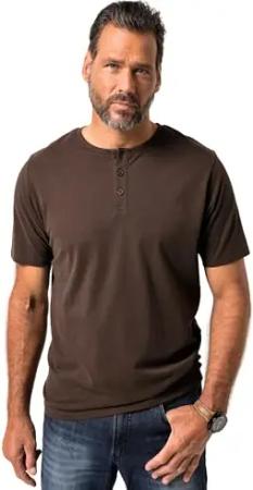 Herren große Größen Übergrößen Menswear L-8XL Henley, Basic, Knopfleiste, Halbarm Dunkelbraun 6XL 726695117-6XL