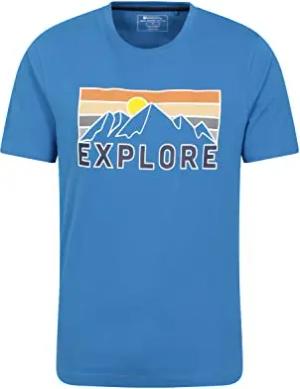 Explore Herren T-Shirt - bequemes, leichtes und weiches T-Shirt aus 100% Baumwolle mit UV-Schutz - ideal für Frühling, Sommer, Outdoor und Urlaub Blau XX-Small
