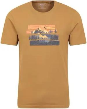 Mountain Stripe T-Shirt mit Grafikdruck für Herren – Leichtes Baumwoll-T-Shirt, Atmungsaktives Material, Lässig, Bequem – Frühling, Sommer, Outdoor Khaki X-Small