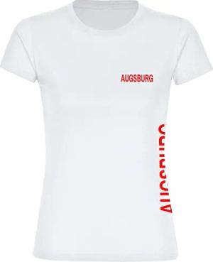 Damen T-Shirt - Augsburg - Brust & Seite - Druck rot - Frauen Größe S weiß