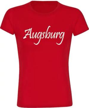 Damen T-Shirt - Augsburg - Schriftzug - Druck weiß - Frauen Größe M rot