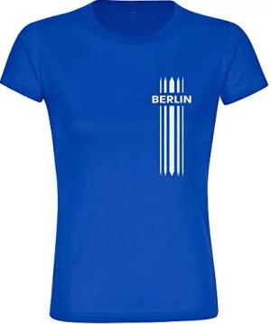 Damen T-Shirt - Berlin blau - Streifen - Druck weiß - Frauen Größe S blau