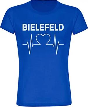Damen T-Shirt - Bielefeld - Herzschlag - Druck weiß - Frauen Größe M blau