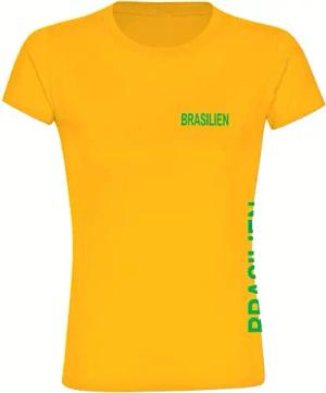 Damen T-Shirt - Brasilien - Brust & Seite - Druck grün - Frauen Größe S gelb