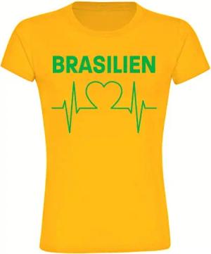 Damen T-Shirt - Brasilien - Herzschlag - Druck grün - Frauen Größe XXL gelb