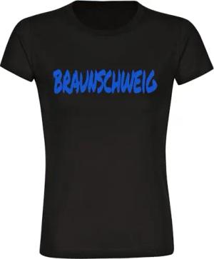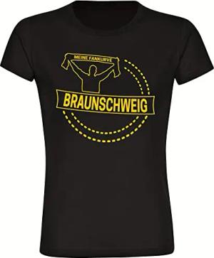 Damen T-Shirt - Braunschweig - Meine Fankurve - Druck gelb - Frauen Größe S schwarz-1