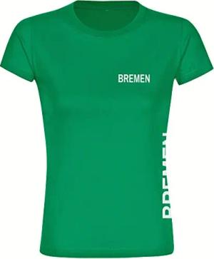 Damen T-Shirt - Bremen - Schriftzug - Druck weiß - Frauen Größe M grün