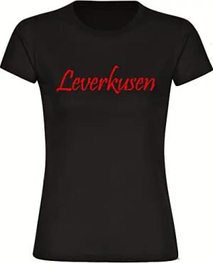 Kinder T-Shirt - Leverkusen - Schriftzug - Druck rot - Kind Größe 176 schwarz