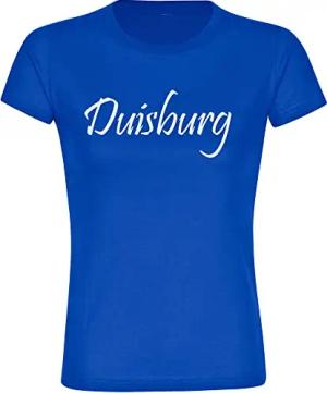 Damen T-Shirt - Duisburg - Schriftzug - Druck weiß - Frauen Größe L blau