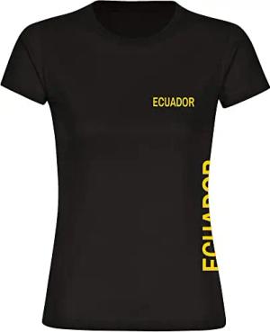 Damen T-Shirt - Ecuador - Brust & Seite - Druck gelb - Frauen Größe S schwarz