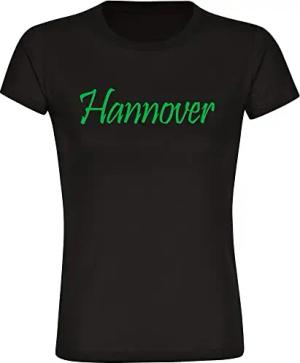 Damen T-Shirt - Hannover - Schriftzug - Druck grün - Frauen Größe XL schwarz