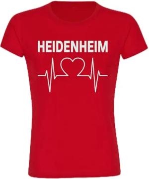 Damen T-Shirt - Heidenheim - Herzschlag - Druck weiß - Frauen Größe M rot