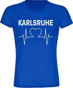 Damen T-Shirt - Karlsruhe - Herzschlag - Druck weiß - Frauen Größe 3XL blau