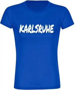 Damen T-Shirt - Karlsruhe - Textmarker - Druck weiß - Frauen Größe M blau