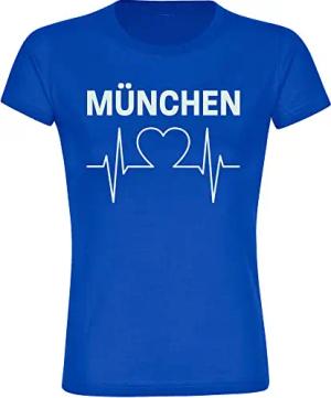 Damen T-Shirt - München blau - Herzschlag - Druck weiß - Frauen Größe XXL blau