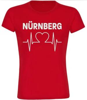 Damen T-Shirt - Nürnberg - Herzschlag - Druck weiß - Frauen Größe L rot