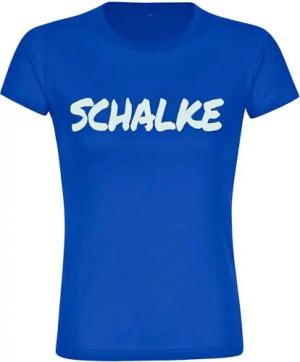 Damen T-Shirt - Schalke - Textmarker - Druck weiß - Frauen Größe S blau