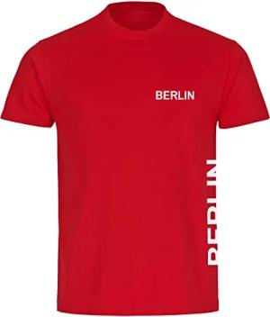 Herren T-Shirt - Berlin rot - Brust & Seite - Druck weiß - Männer Größe XL rot