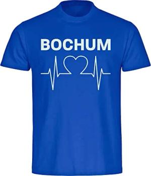 Herren T-Shirt - Bochum - Herzschlag - Druck weiß - Männer Größe L blau