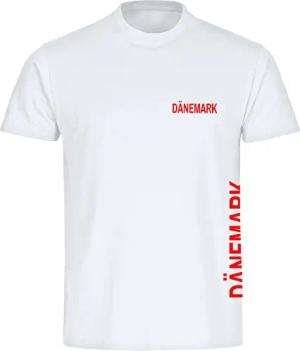 Kontrast T-Shirt - Dänemark - Brust & Seite - Druck weiß - Männer Größe XL rot/weiß