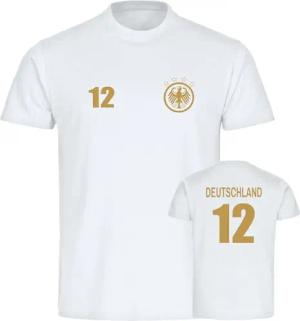 Herren T-Shirt - Deutschland - Adler Retro Trikot 12 Gold - Druck Gold metallic - Männer Größe XXL weiß
