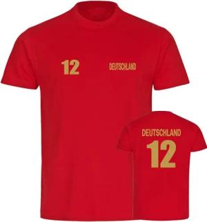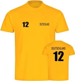 Herren T-Shirt - Deutschland - Trikot Nummer 12 - Druck schwarz - Männer Größe 3XL gelb