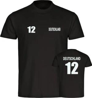 Herren T-Shirt - Deutschland - Trikot Nummer 12 - Druck weiß - Männer Größe 5XL schwarz