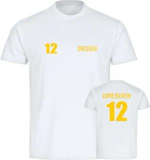 Herren T-Shirt - Dresden - Trikot Nummer 12 - Druck gelb - Männer Größe S weiß