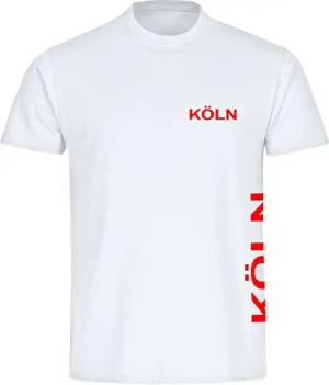 Herren T-Shirt - Köln - Brust & Seite - Druck rot - Männer Größe XXL weiß