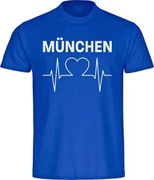 Herren T-Shirt - München blau - Herzschlag - Druck weiß - Männer Größe XXL blau