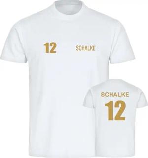 Herren T-Shirt - Schalke - Trikot Nummer 12 Gold - Druck Gold metallic - Männer Größe XXL weiß