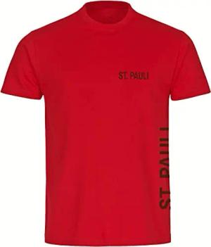 Herren T-Shirt - St. Pauli - Brust & Seite - Druck braun - Männer Größe XXL rot