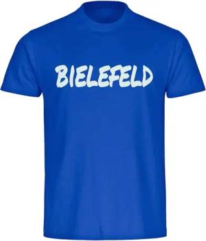Kinder T-Shirt - Bielefeld - Textmarker - Druck weiß - Kind Größe 164 blau