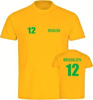 Kinder T-Shirt - Brasilien - Trikot Nummer 12 - Druck grün - Kind Größe 176 gelb