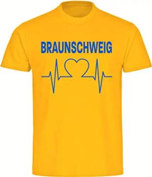 Kinder T-Shirt - Braunschweig - Herzschlag - Druck blau - Kind Größe 152 gelb