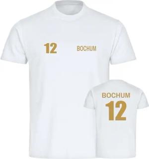 Kinder T-Shirt - Bremen - Trikot Nummer 12 Gold - Druck Gold metallic - Kind Größe 128 weiß