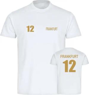 Kinder T-Shirt - Frankfurt - Trikot Nummer 12 Gold - Druck Gold metallic - Kind Größe 128 weiß