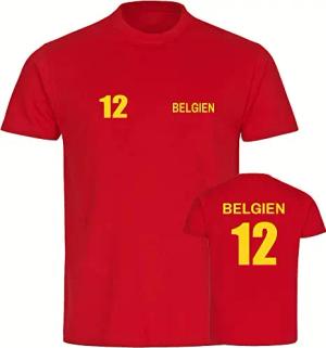 Herren T-Shirt - Belgien - Brust & Seite - Druck rot - Männer Größe M gelb