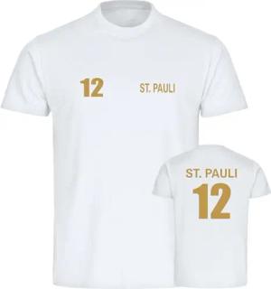 Kinder T-Shirt - St. Pauli - Trikot Nummer 12 Gold - Druck Gold metallic - Kind Größe 164 weiß